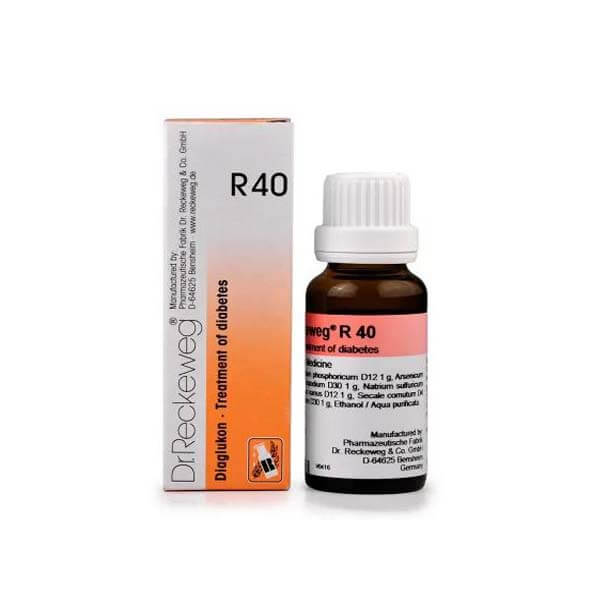 Dr. Reckeweg R40 Drops is a homoeopathic drop that aids in diabetes management. It can help with conditions related to the blood and glandular system, such as leukaemia, anaemia, and lymphogranulomatosis.